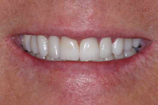 Bob’s smile makeover took four appointments. The first appointment involved preparing the teeth, records and placing attractive provisional restorations. I use the upper teeth provisional restorations as a prototype to determine shape and color to visualize the outcome of the final restorations. The lower teeth provisionals were designed to build up the bite and measure Bob’s response to increasing the lower face height and decompression of the joint.
